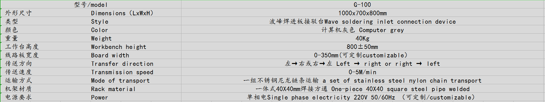● 適合波峰焊錫機(jī)前端輸送接駁臺(tái)