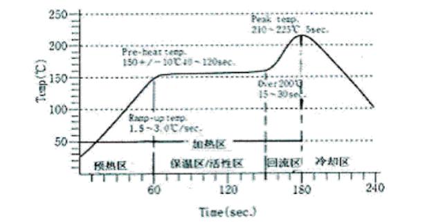 對于所使用錫膏的性能參數(shù)也是必須考慮的因素之一,首先是考慮到其合金的熔點(diǎn),即回流區(qū)溫度應(yīng)高于合金熔點(diǎn)的30-40℃。其次應(yīng)考慮錫膏的活性溫度嘆及持續(xù)的時間,有條件時應(yīng)與錫膏供應(yīng)商了解,也可以參考供應(yīng)商提供的溫度曲線。