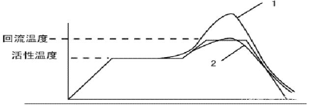 圖7中曲線1所不的溫度曲線表明回流溫度過咼,易造成PCB以及兀器件損傷,應(yīng)降低回流區(qū)溫度,而曲線2所示的溫度表明回流溫度過低。此時焊料雖已熔化,但流動性差。焊料不能充分潤濕,故易引起虛焊或冷焊。