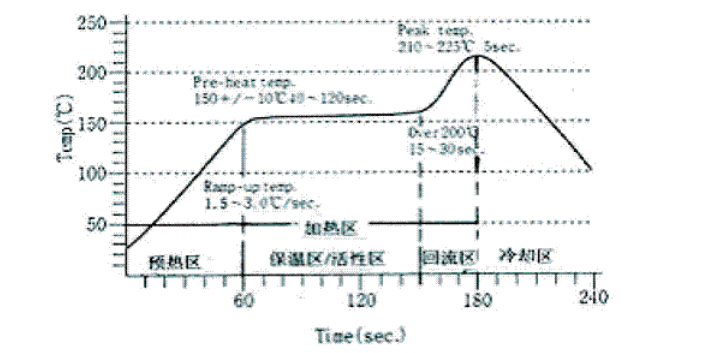 為了加深對理想的溫度曲線的認識,現將各區的溫度、停留時間以及焊錫膏在各區的變化情況,介紹如下: