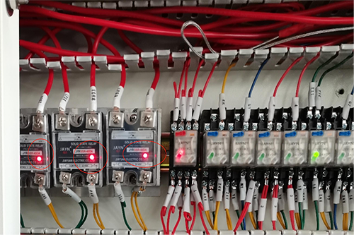 3、檢查設備的控制部分,對加熱進行檢測和控制。固態繼電器是否有輸出,如果不確定,用相鄰溫區的繼電器切換,判斷繼電器是否有故障。